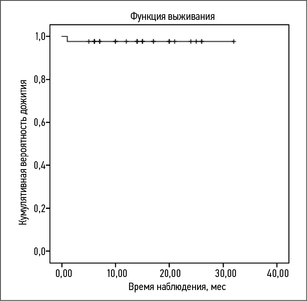 Рис. 2. Выживаемость пациентов в срок до 36 мес, метод Каплана–Мейера.