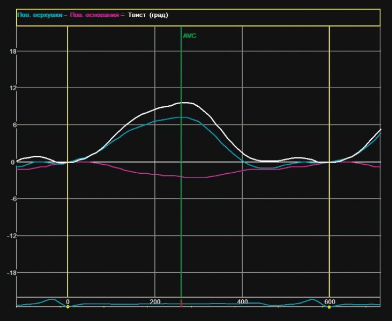 Рис. 5. Speckle tracking-ЭхоКГ: скручивание миокарда.