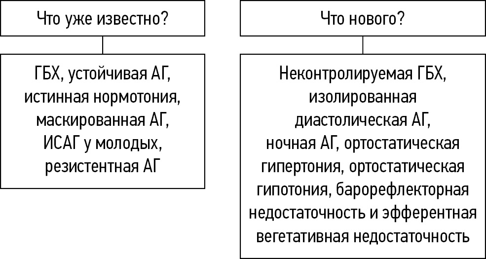| Маскированная неконтролируемая гипертония | Пациенты, получающие ≥4 антигипертензивных препаратов и достигающие адекватного контроля клинического АД, но с повышенным внеамбулаторным АД |