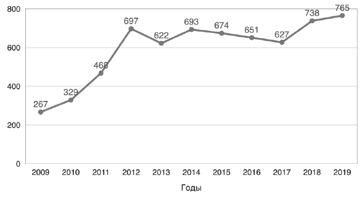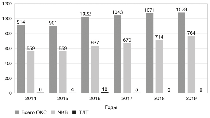 Рис. 3. динамика количества чКв по поводу ОКС за 2009–2019 гг.
