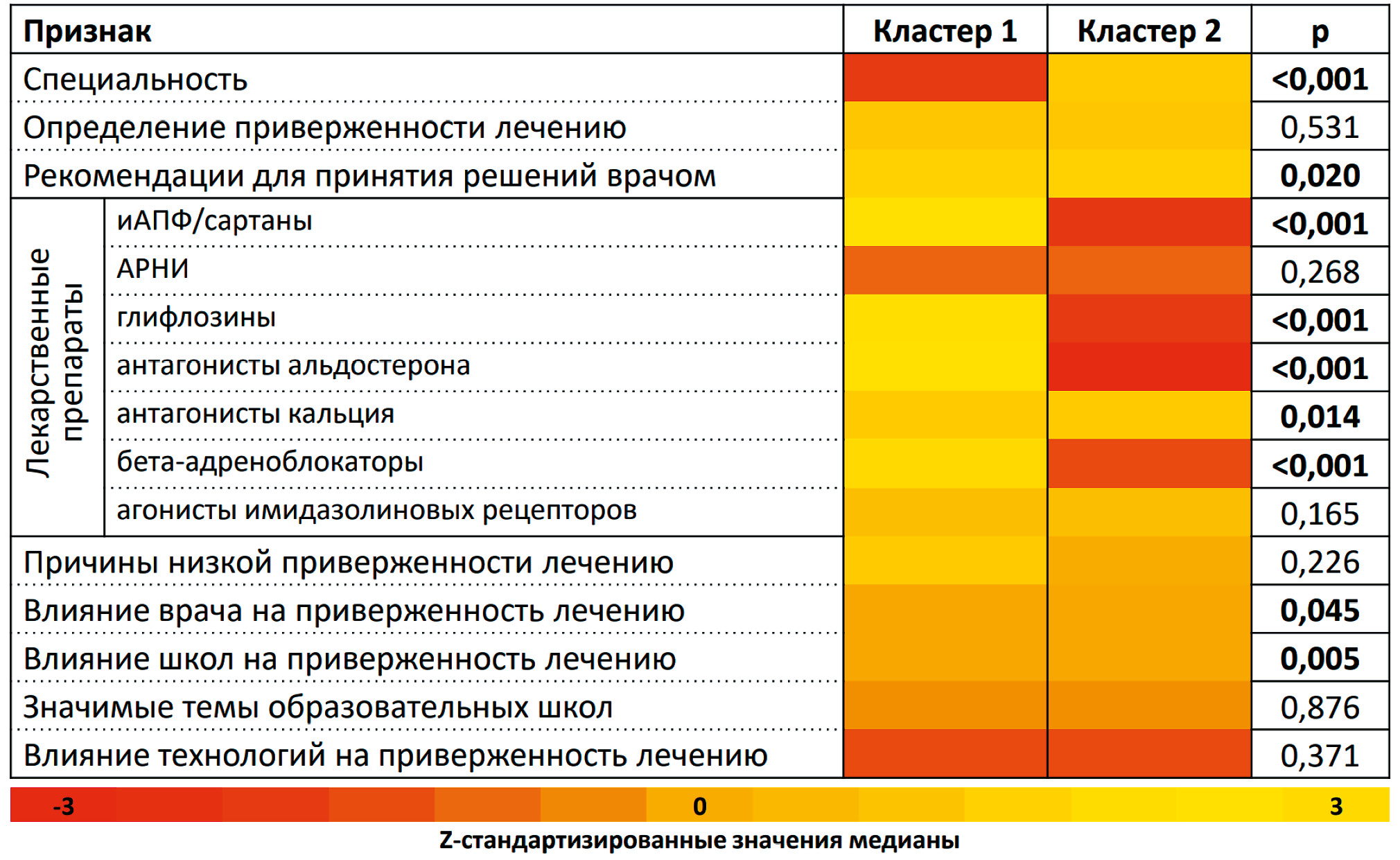 MATERIALS AND METHODS: Using an online survey form (nine questions regarding adherence to outpatient treatments), 105 doctors were surveyed, including general practitioners (GPs; 51%), therapists (27%), cardiologists (21%), and other specialties (1%). The survey results were processed using hierarchical cluster analysis.