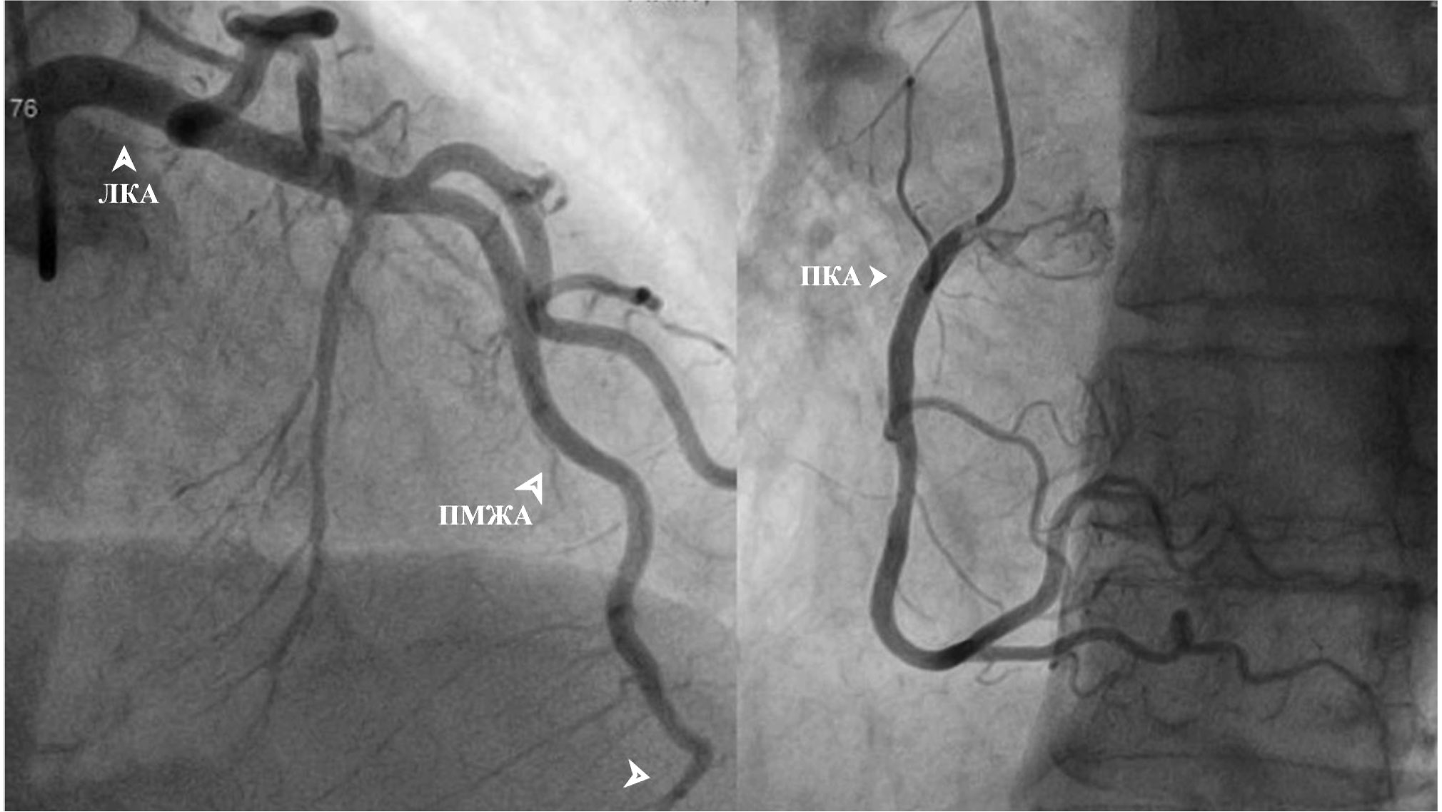Note. ЛКА — left coronary artery, ПМЖА — anterior interventricular artery, ПКА — right coronary artery.