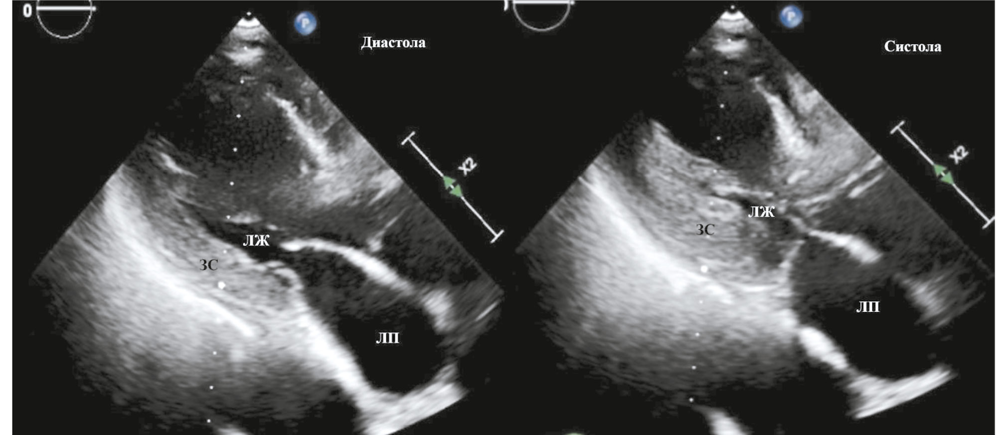 Note. ЛЖ — left ventricle, ЛП — left atrium, ЗС — posterior wall of the left ventricle.