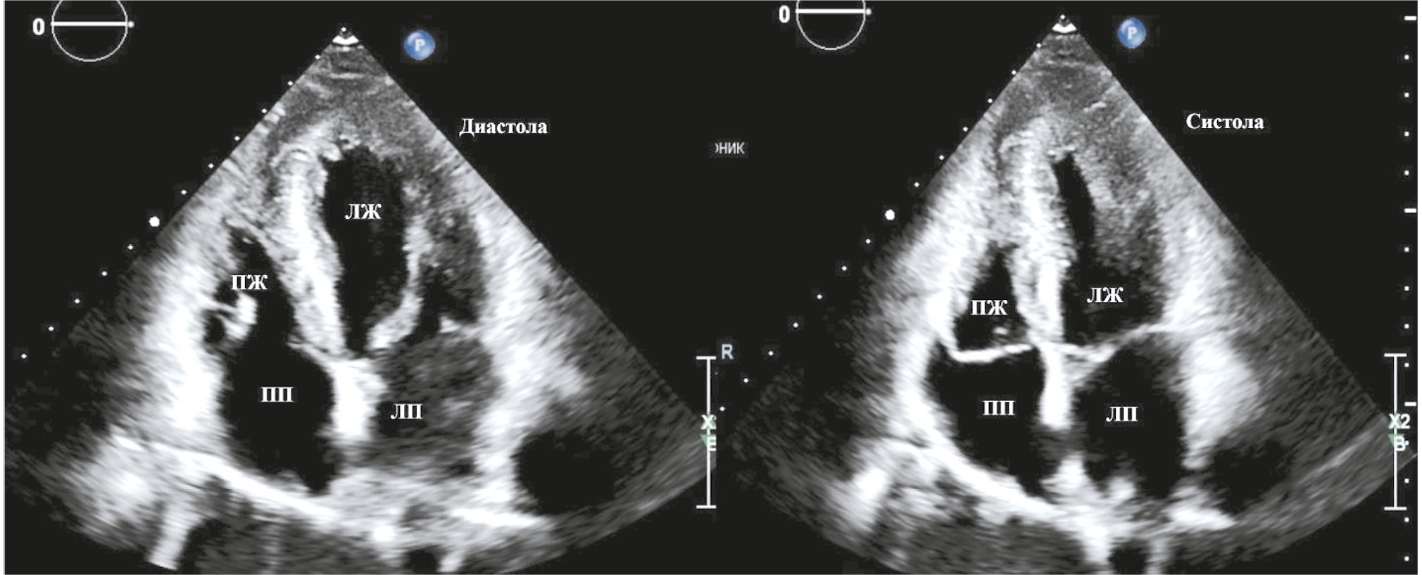Note. ЛЖ — left ventricle, ЛП — left atrium, ПЖ — right ventricle, ПП — right atrium.