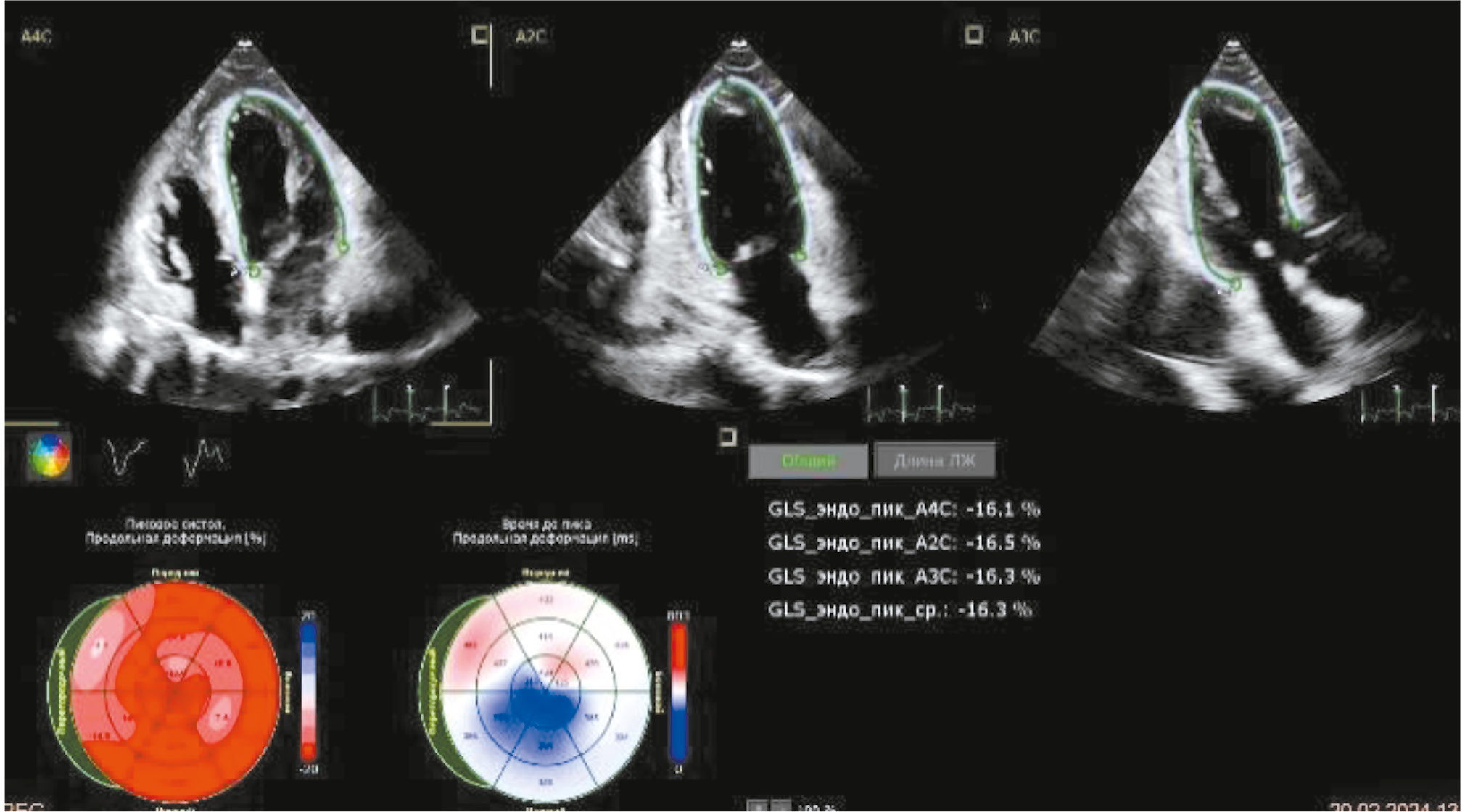 Рис. 7. Эхокардиография на десятые сутки госпитализации: показатели глобальной деформации левого желудочка.