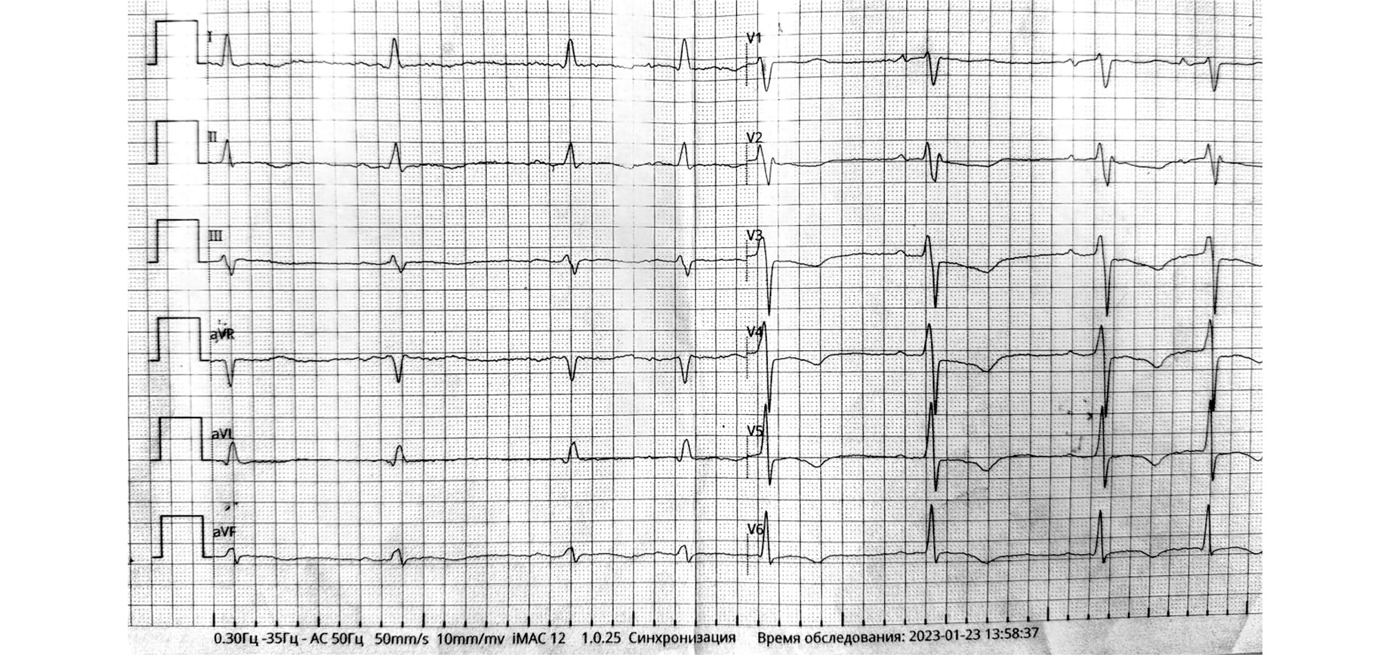 Fig. 2. Electrocardiogram of patient B. dated January 23, 2023 during inpatient treatment at the Central District Hospital.