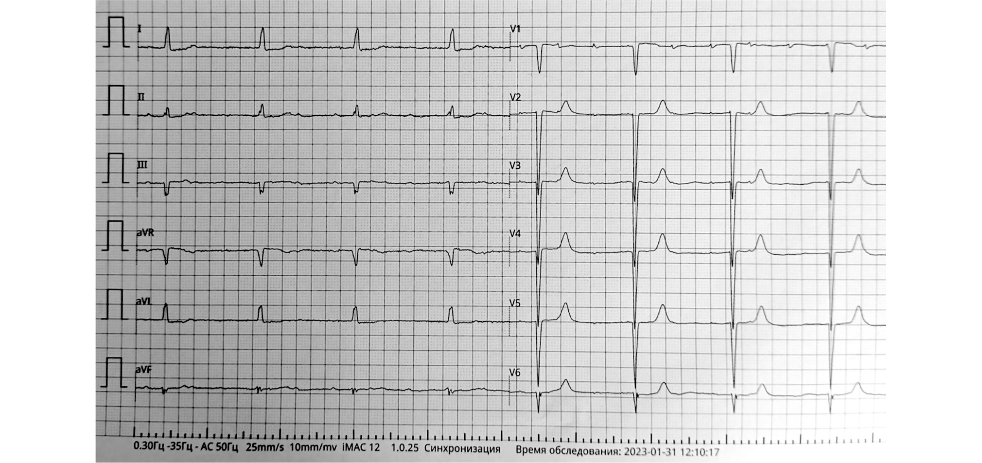 Fig. 3. Electrocardiogram of patient B. dated January 31, 2023 before transfer to the Regional Clinical Cardiodispanser.