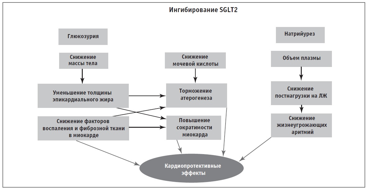 Рис. 2. Эффекты ингибирования SGLT2. / Fig. 2. Effects of SGLT2 inhibition.