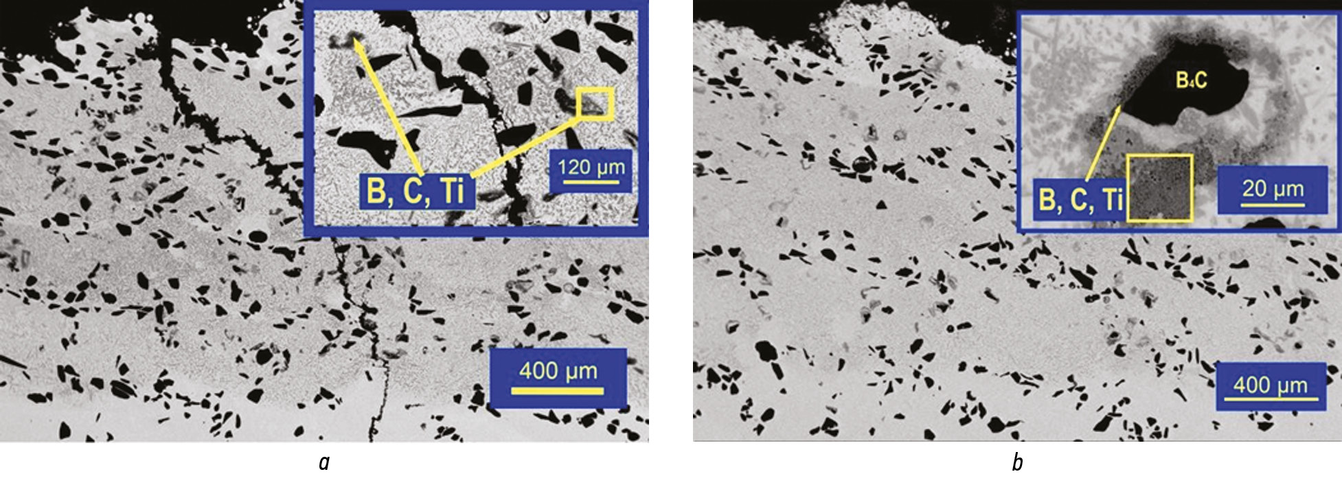 Наплавка металлокерамических композитов в настоящее время сопряжена с рядом проблем. Одна из них ― склонность к дефектообразованию: композиты подвержены развитию таких дефектов, как трещины, поры и участки несплавления [2–4]. Другая ― неконтролируемые реакции in situ, которые могут вызвать дальнейшие микроструктурные изменения даже после процесса наплавки [5–7].