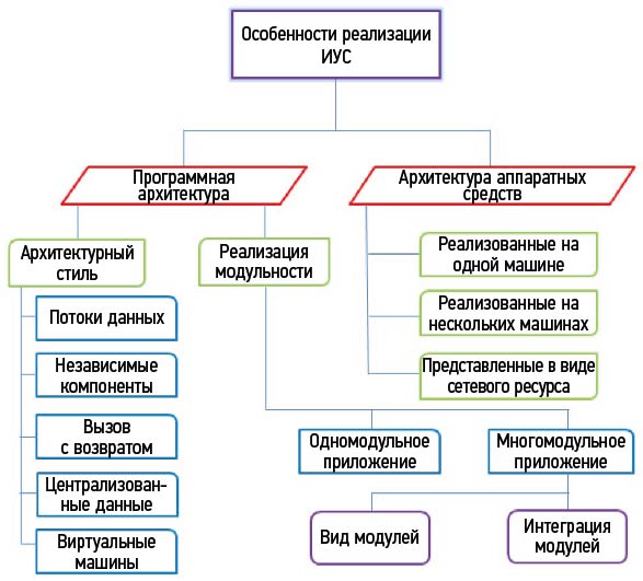 Рис. 3. Классификация архитектур ИУС по особенностям реализации.