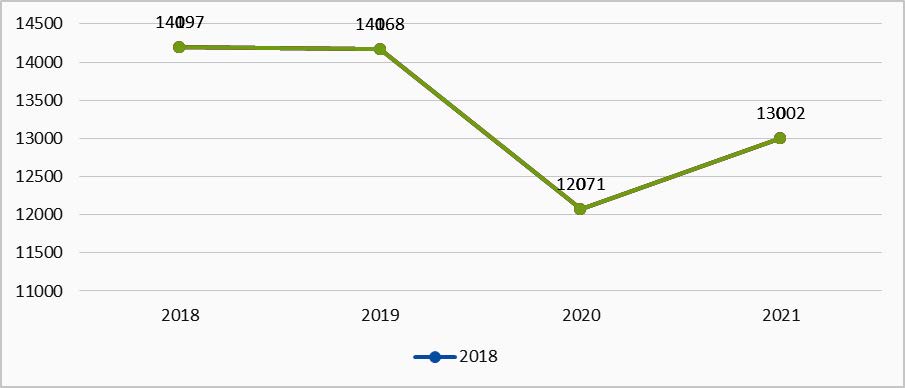 Рис. 1. Состояние численности детей, впервые признанных инвалидами, с ДЦП за 2018–2021 гг.